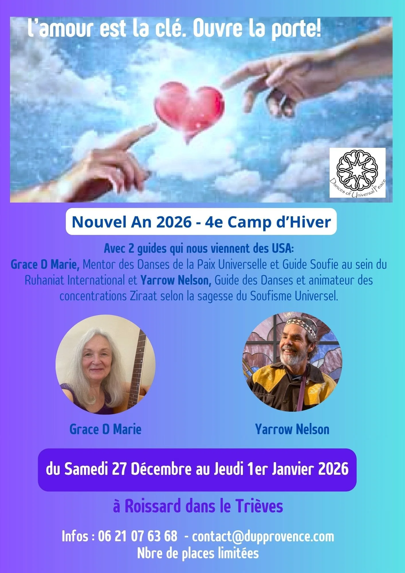 En dansant et chantant ensemble, nous créons une conscience de paix, d’unité, et de partage dans la joie. En complément des Danses existent aussi des Marches qui permettent d’expérimenter différentes façons d’être.